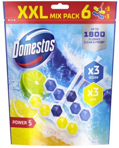 A Domestos Power Aktív WC tisztító és illatosító blokk (6×50 g) ideális megoldás a tiszta, higiénikus és friss WC-k fenntartására otthon, irodában vagy közösségi helyiségekben. Hatékony formulája folyamatosan tisztítja a WC-csészét, eltávolítja a lerakódásokat és meggátolja a baktériumok elszaporodását.
