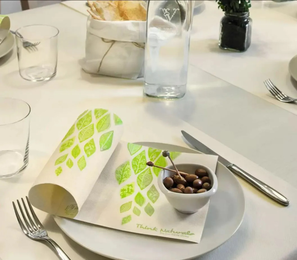 Lucart Fato Natural Veggie szalvéta. Kétrétegű, natúr, tissue minőségű szalvéta, italoskarton dobozok újrafelhasznált alapanyagából készül. Száraz élelmiszerrel való érintkezésre alkalmas.