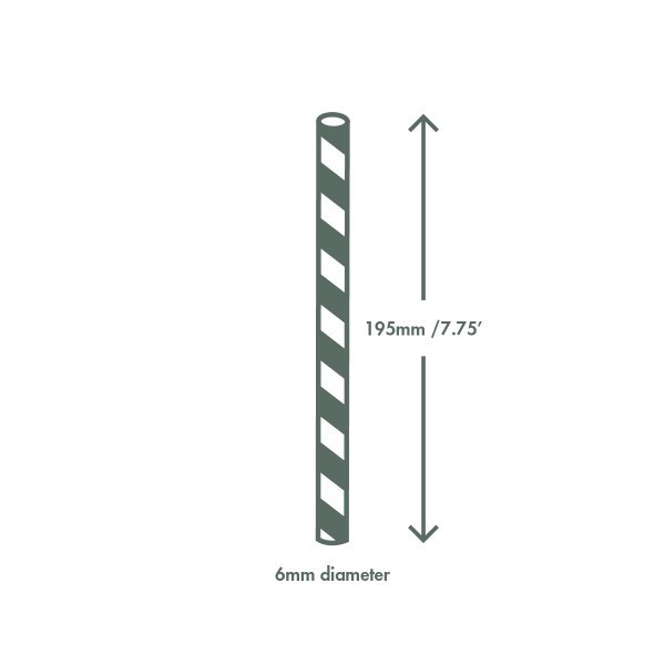 Az Egyesült Királyságban készült, fenntartható módon előállított papírból. Zöld és fehér csíkos, 6 mm-es szívószálak.