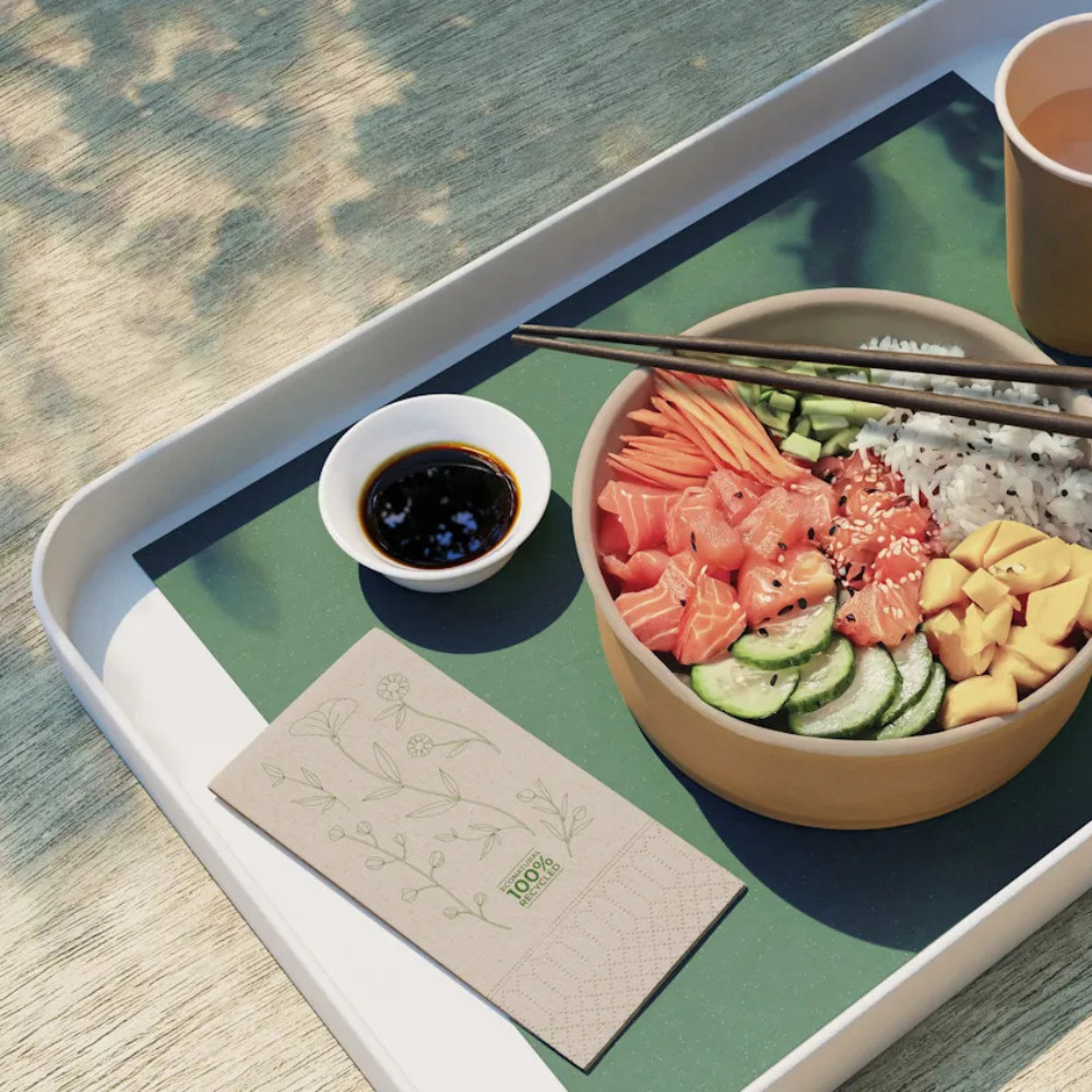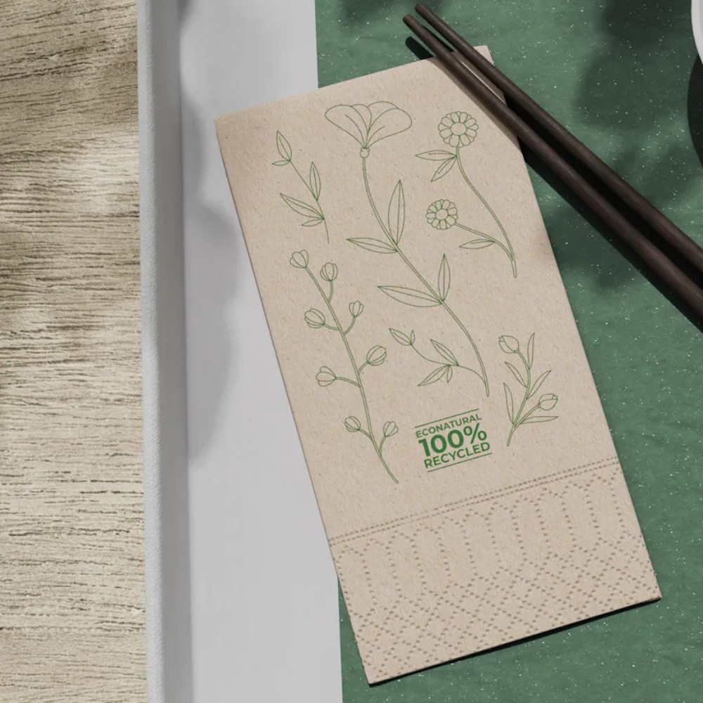 A Lucart EcoNatural Flora szalvéta a fenntartható vendéglátás jegyében készült: 33x33 cm-es méretével, 1/8 hajtásával és kétrétegű kialakításával egyszerre praktikus, elegáns és környezetbarát.