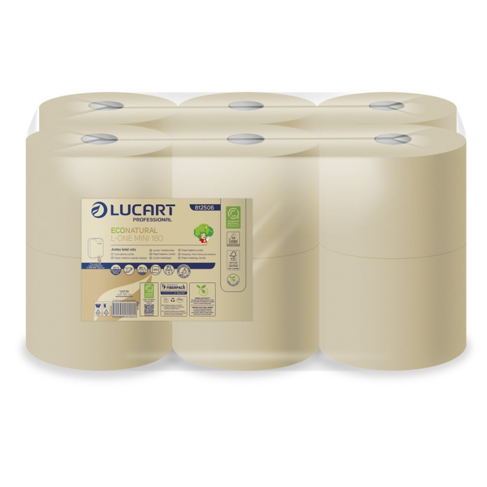 Toalettpapír L-ONE MINI adagolóhoz, kétrétegű, Fiberpack papír, barna | 12 tekercs