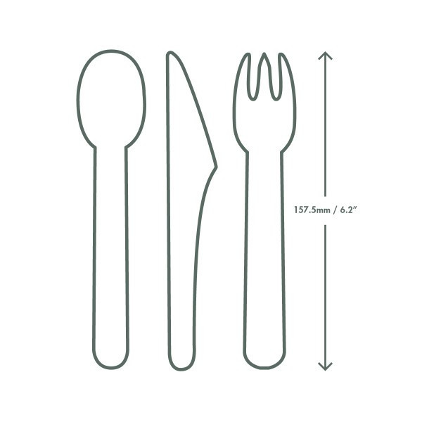 • Teljes készlet egy csomagban: kés, villa, kanál és szalvéta, papírtasakban.